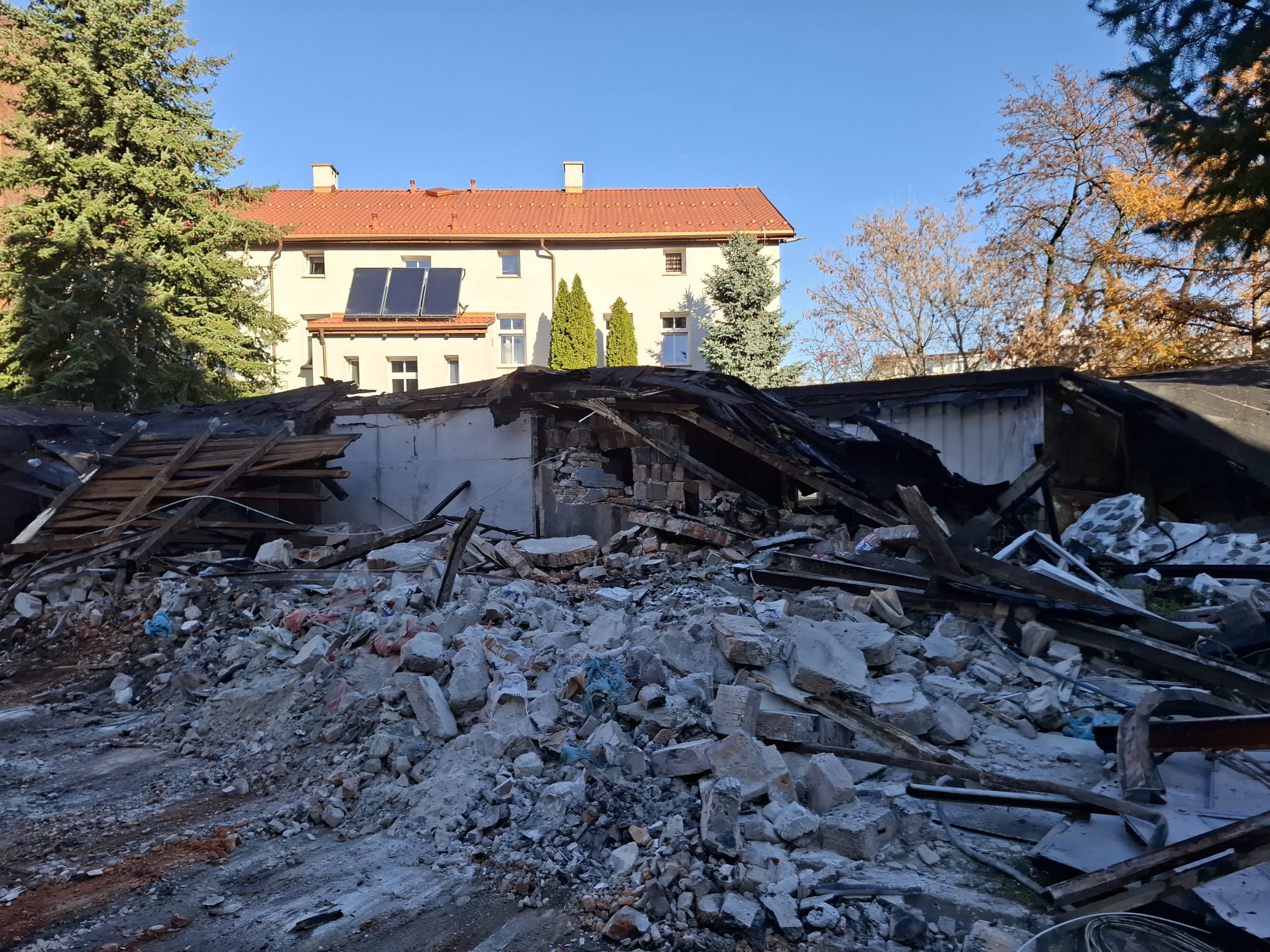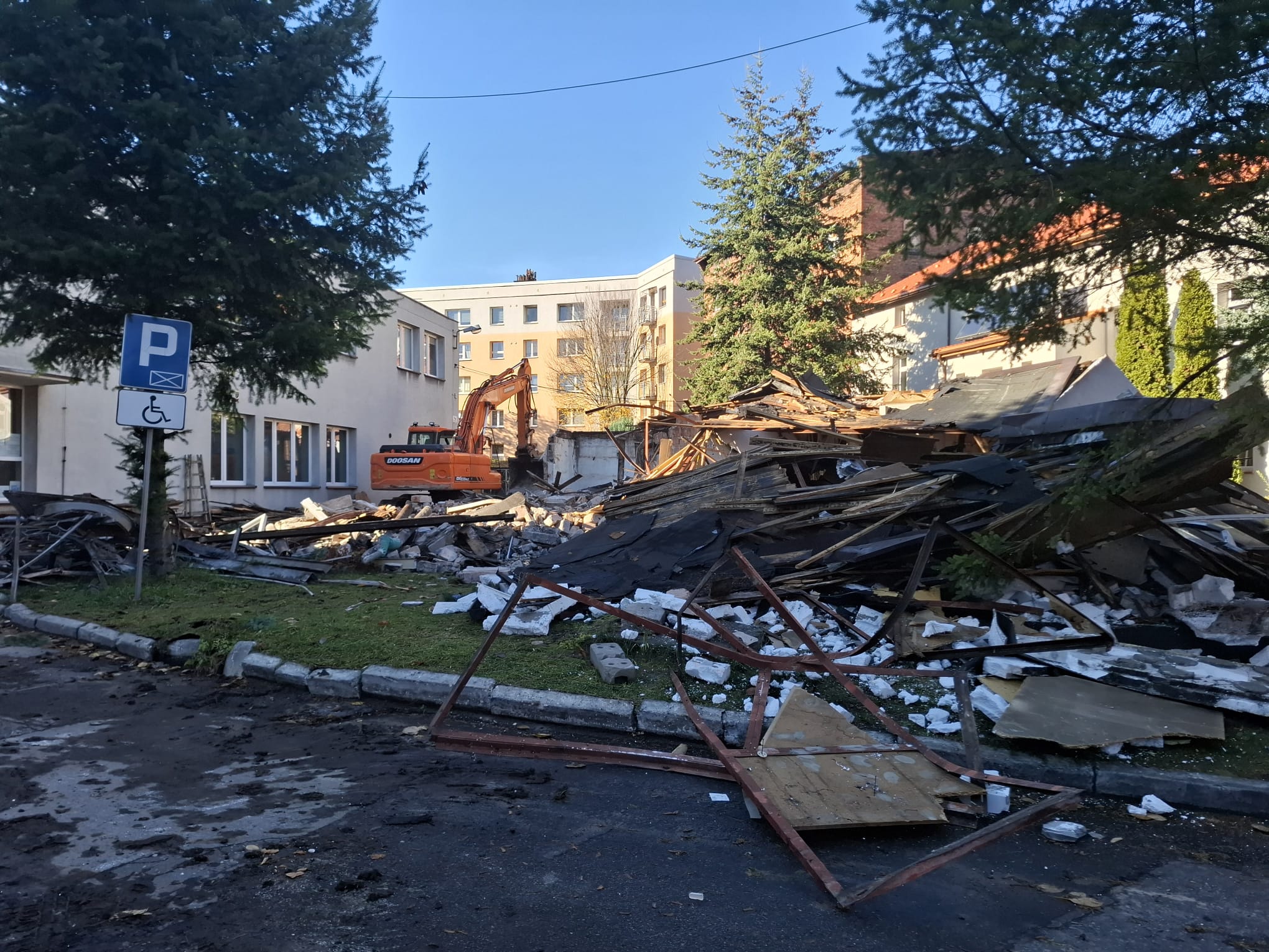 04.11.2025r. Aktualizacja. Dziś rozbiórka pomieszczeń technicznych / magazynów – kolejny etap Budowy.